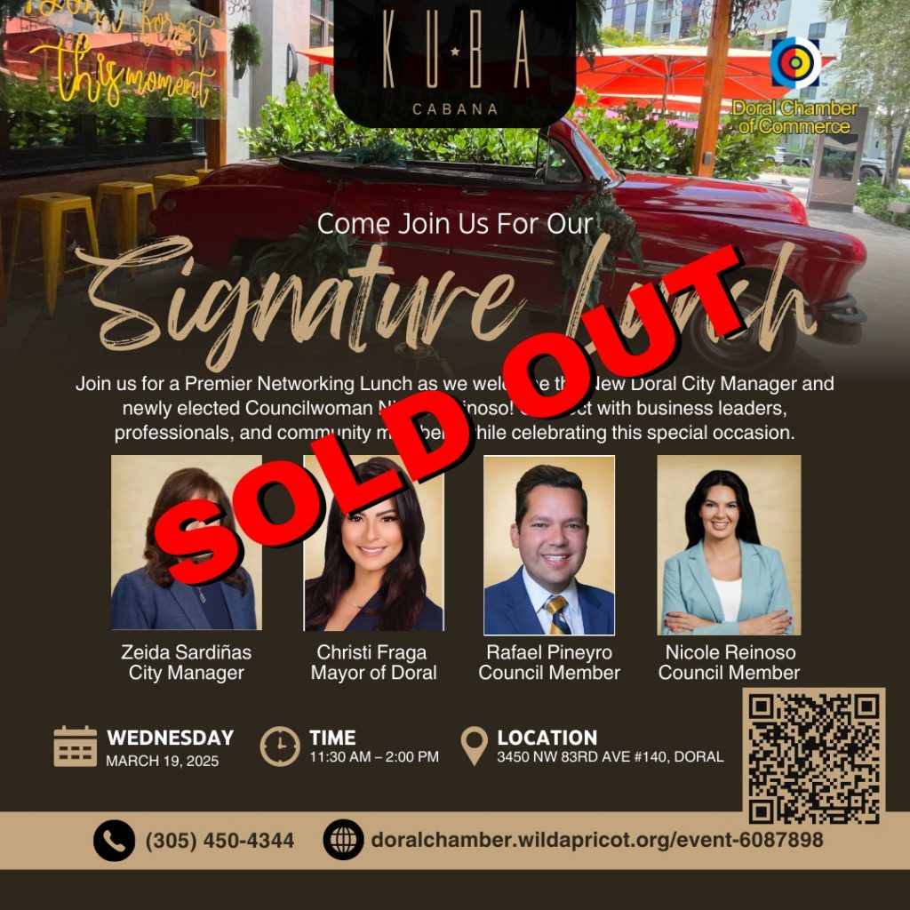 We are honored to welcome Doral’s new City Manager and newly elected Councilwoman Nicole Reinoso! This is a unique opportunity to connect with the leaders shaping the future of Doral, including: